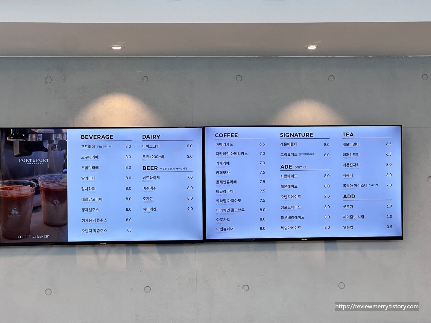 카페는 수영장이 있는 스카이건물 맨 위층에 위치하고 있으며 메뉴와 가격은 위 사진과 같다.