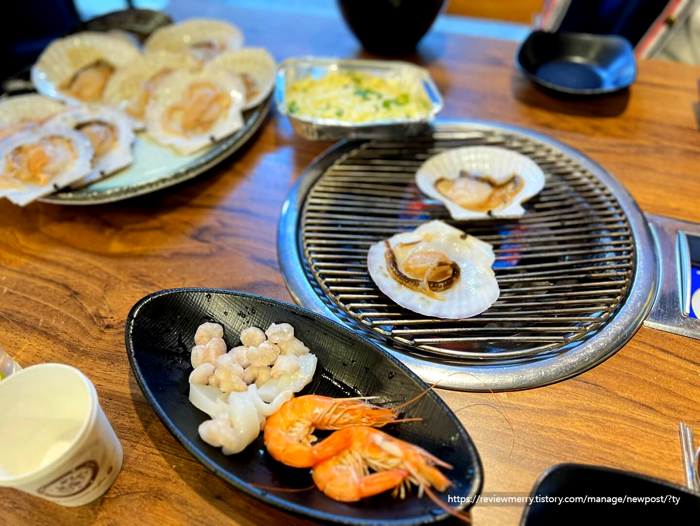 조개구이를 다 먹고 나면 이렇게 콘치즈에 남은 조개 조금과 처음에 같이 나왔던 관자들을 넣어서 만들어주시는데 이거 진짜 꼭!!! 드세요. 정말 너무 맛있답니다.