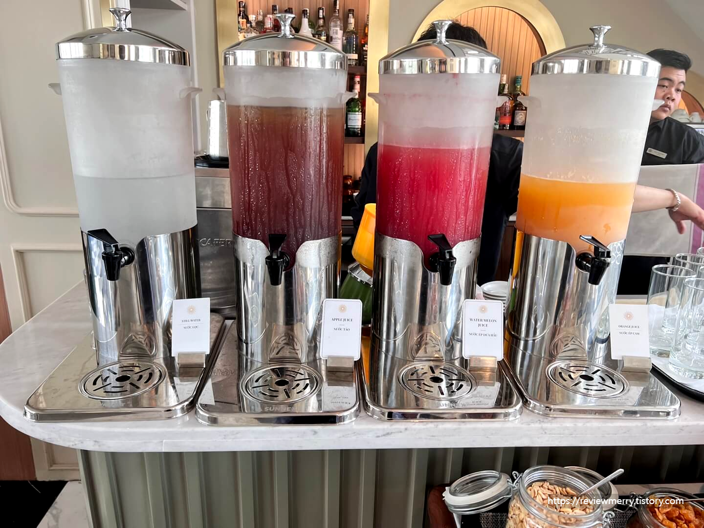 음료는 물, 사과, 수박, 오렌지 주스가 마련되어 있었으며 무이네와 마찬가지로 착즙 되어 건더기가 없는 달달한 음료의 맛이었답니다.